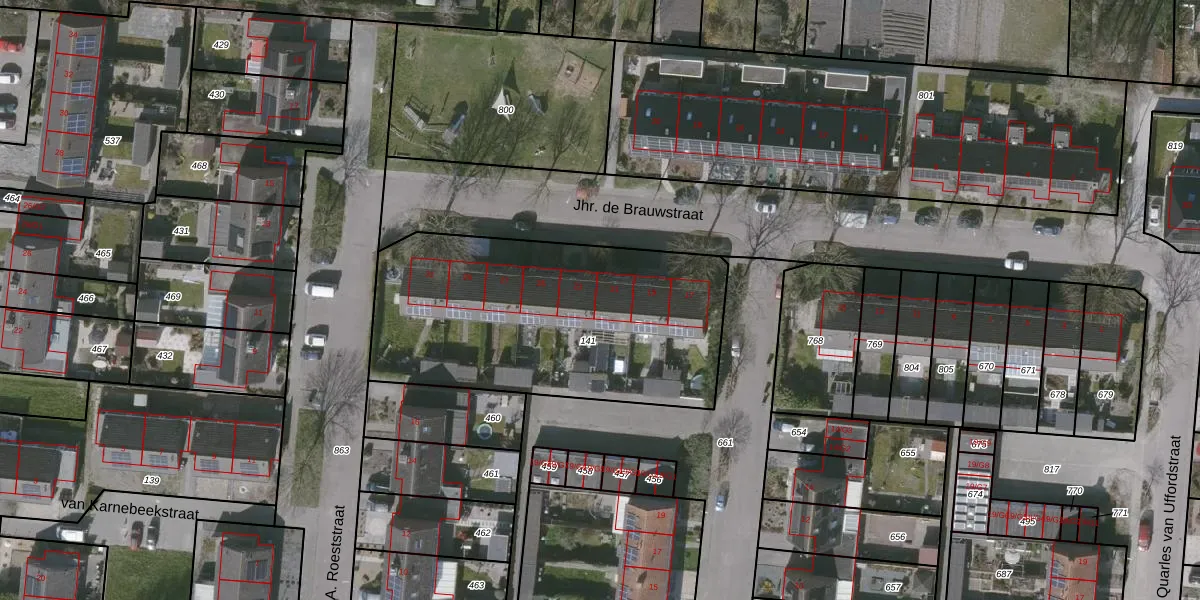 Het perceel waarop Jhr. de Brauwstraat 21 staat heeft een oppervlakte van 1460 m². Dit is een zeer groot perceel. De perceeloppervlakte wordt geregistreerd door het Kadaster. Gedetailleerde informatie over de maten van dit perceel kunt u vinden in het rapport Kadastrale kaart met maatvoering van Jhr. de Brauwstraat 21.