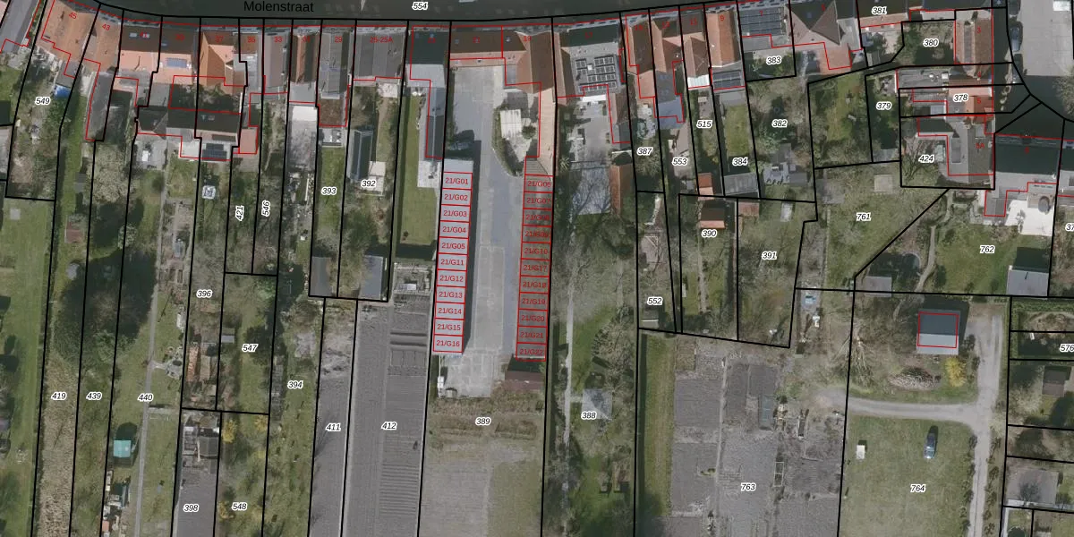 Molenstraat 21-G17 is gelegen op kadastraal perceel OBG00EG389. Deze kadastrale aanduiding is uniek en wordt gebruikt door het Kadaster om eigendomsrechten en andere zakelijke rechten vast te leggen. Het perceel maakt onderdeel uit van de kadastrale gemeente Oostburg.