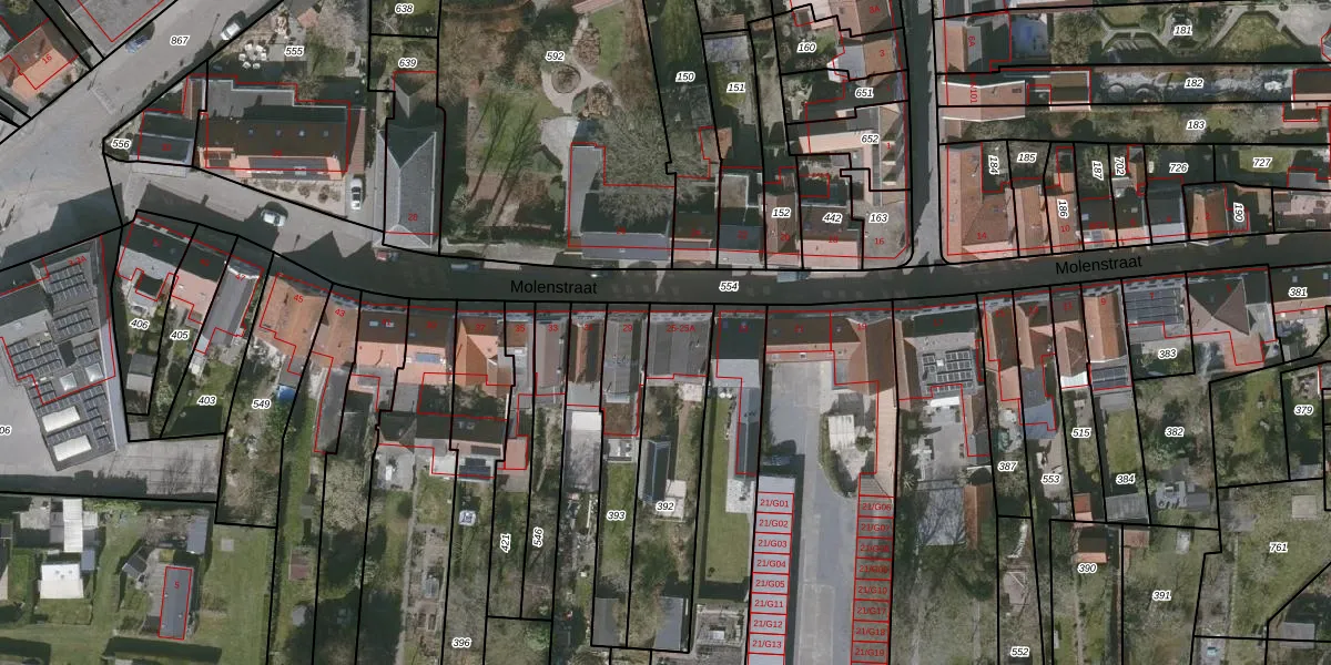 Molenstraat 25-A is gelegen op kadastraal perceel OBG00EG392. Deze kadastrale aanduiding is uniek en wordt gebruikt door het Kadaster om eigendomsrechten en andere zakelijke rechten vast te leggen. Het perceel maakt onderdeel uit van de kadastrale gemeente Oostburg.