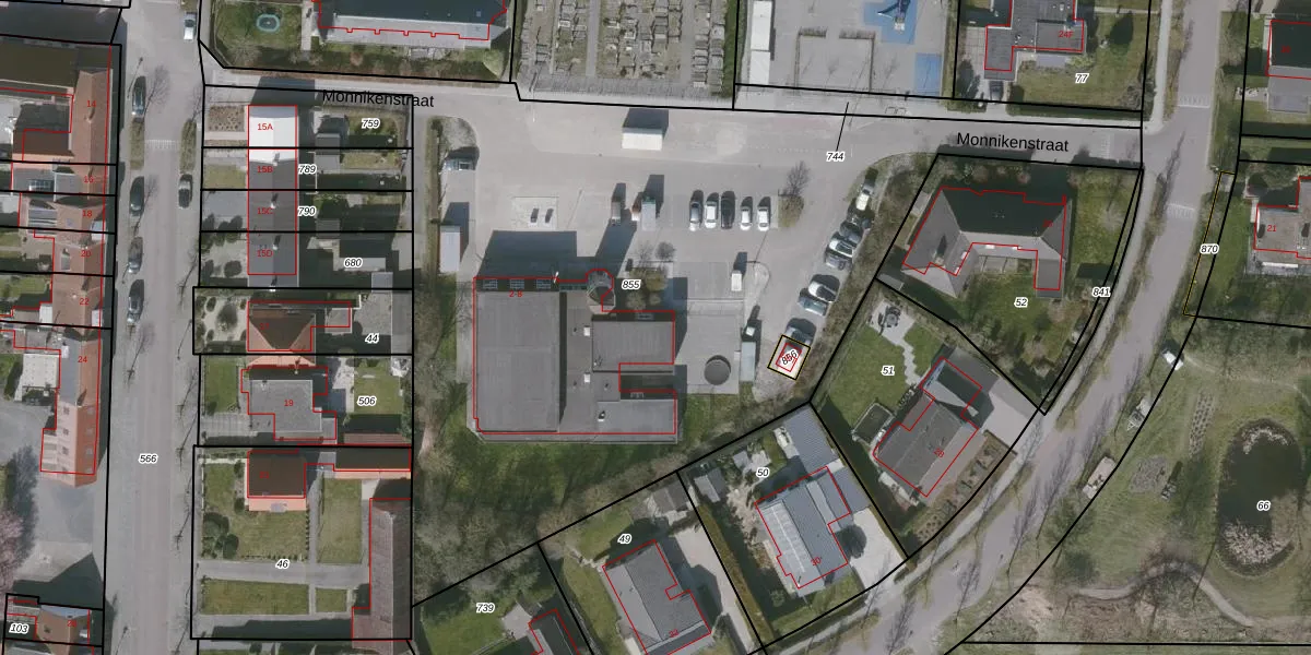 Het perceel waarop Monnikenstraat 4 staat heeft een oppervlakte van 4554 m². Dit is een zeer groot perceel. De perceeloppervlakte wordt geregistreerd door het Kadaster. Gedetailleerde informatie over de maten van dit perceel kunt u vinden in het rapport Kadastrale kaart met maatvoering van Monnikenstraat 4.