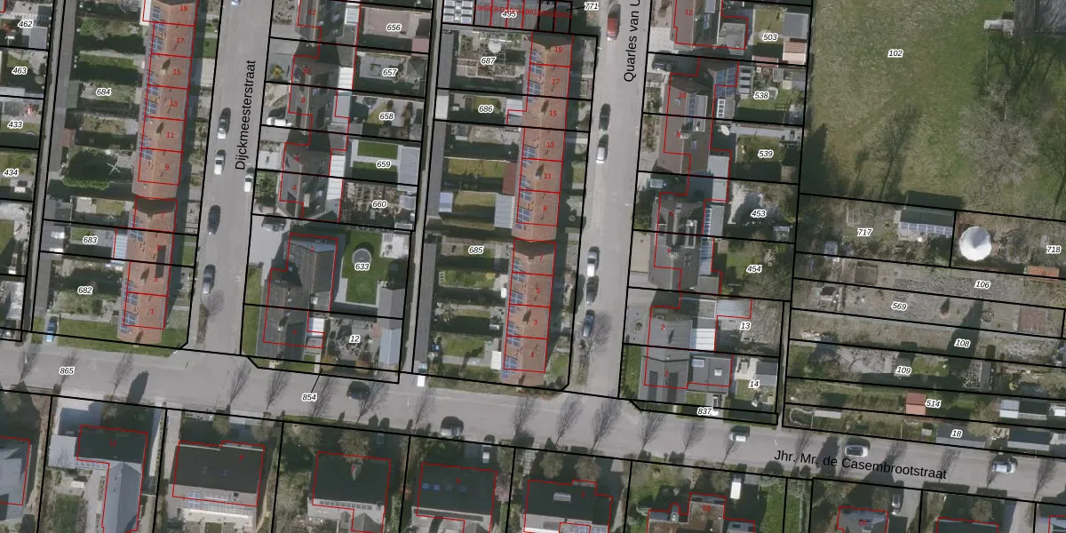 Het perceel waarop Quarles van Uffordstraat 7 staat heeft een oppervlakte van 1422 m². Dit is een zeer groot perceel. De perceeloppervlakte wordt geregistreerd door het Kadaster. Gedetailleerde informatie over de maten van dit perceel kunt u vinden in het rapport Kadastrale kaart met maatvoering van Quarles van Uffordstraat 7.