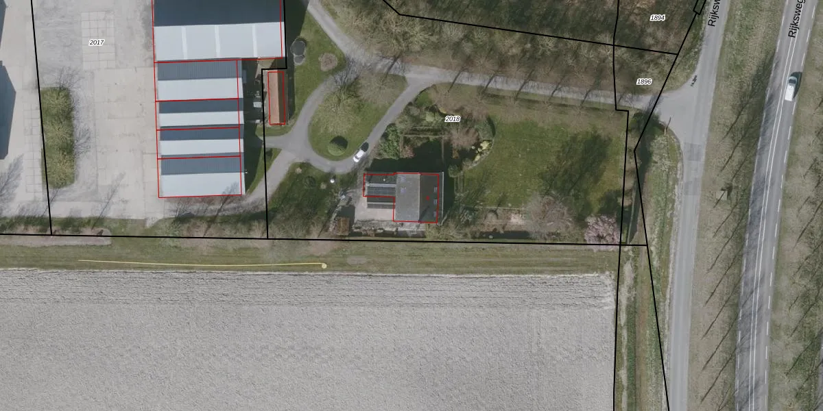 Het perceel waarop Rijksweg 9 staat heeft een oppervlakte van 4910 m². Dit is een zeer groot perceel. De perceeloppervlakte wordt geregistreerd door het Kadaster. Gedetailleerde informatie over de maten van dit perceel kunt u vinden in het rapport Kadastrale kaart met maatvoering van Rijksweg 9.