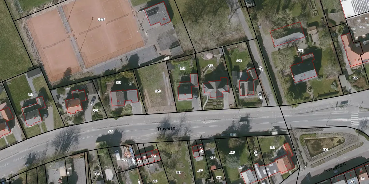 Het perceel waarop Traverse 6 staat heeft een oppervlakte van 446 m². Dit is een groot perceel. De perceeloppervlakte wordt geregistreerd door het Kadaster. Gedetailleerde informatie over de maten van dit perceel kunt u vinden in het rapport Kadastrale kaart met maatvoering van Traverse 6.