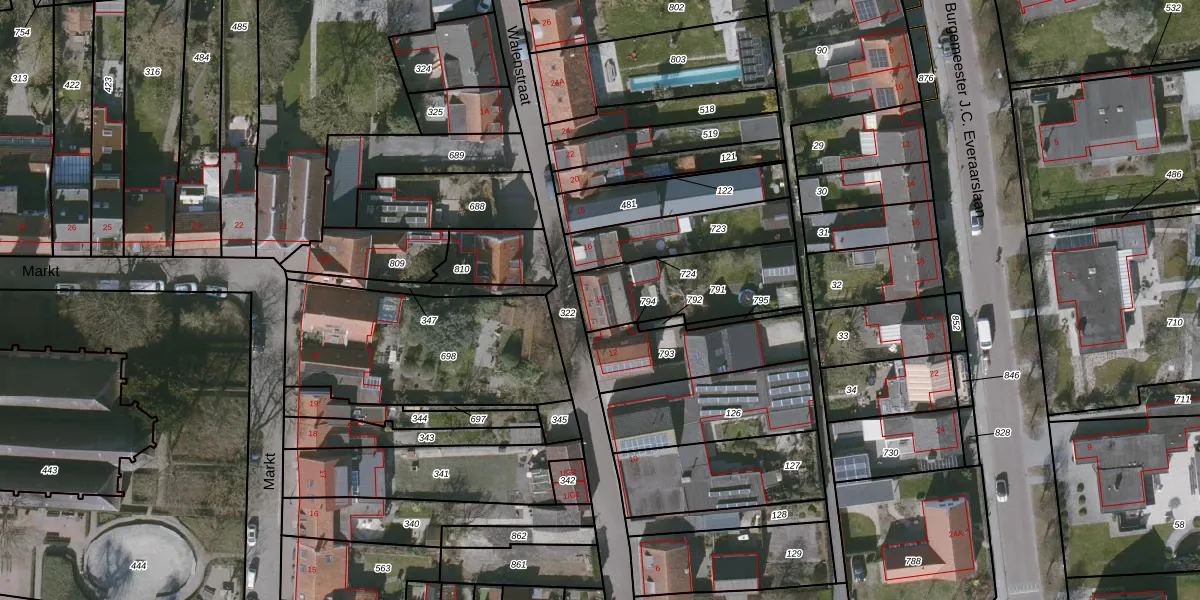 Het perceel waarop Walenstraat 14 staat heeft een oppervlakte van 390 m². Dit is een groot perceel. De perceeloppervlakte wordt geregistreerd door het Kadaster. Gedetailleerde informatie over de maten van dit perceel kunt u vinden in het rapport Kadastrale kaart met maatvoering van Walenstraat 14.