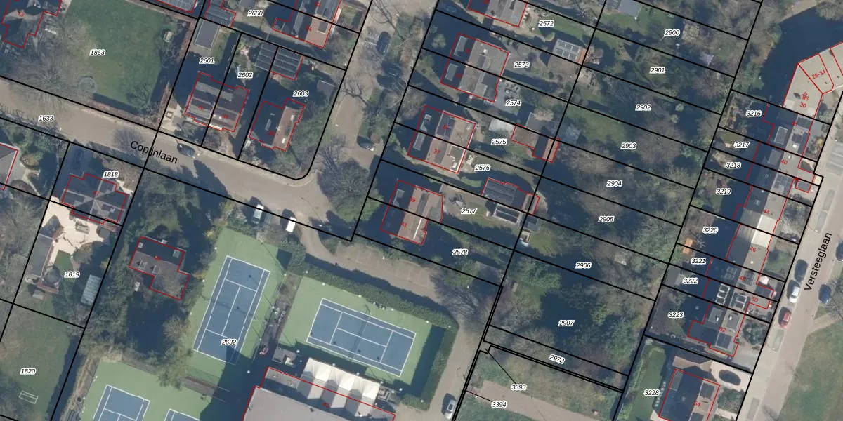 Het perceel waarop Copijnlaan 39 staat heeft een oppervlakte van 353 m². Dit is een groot perceel. De perceeloppervlakte wordt geregistreerd door het Kadaster. Gedetailleerde informatie over de maten van dit perceel kunt u vinden in het rapport Kadastrale kaart met maatvoering van Copijnlaan 39.