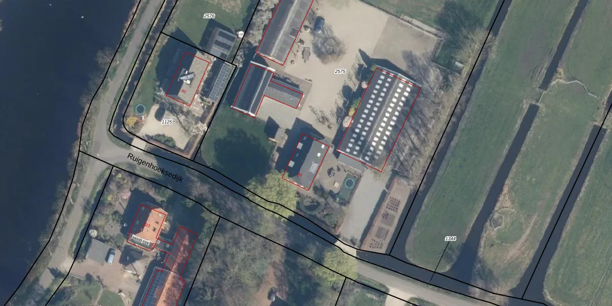 Het perceel waarop Ruigenhoeksedijk 90 staat heeft een oppervlakte van 8149 m². Dit is een zeer groot perceel. De perceeloppervlakte wordt geregistreerd door het Kadaster. Gedetailleerde informatie over de maten van dit perceel kunt u vinden in het rapport Kadastrale kaart met maatvoering van Ruigenhoeksedijk 90.