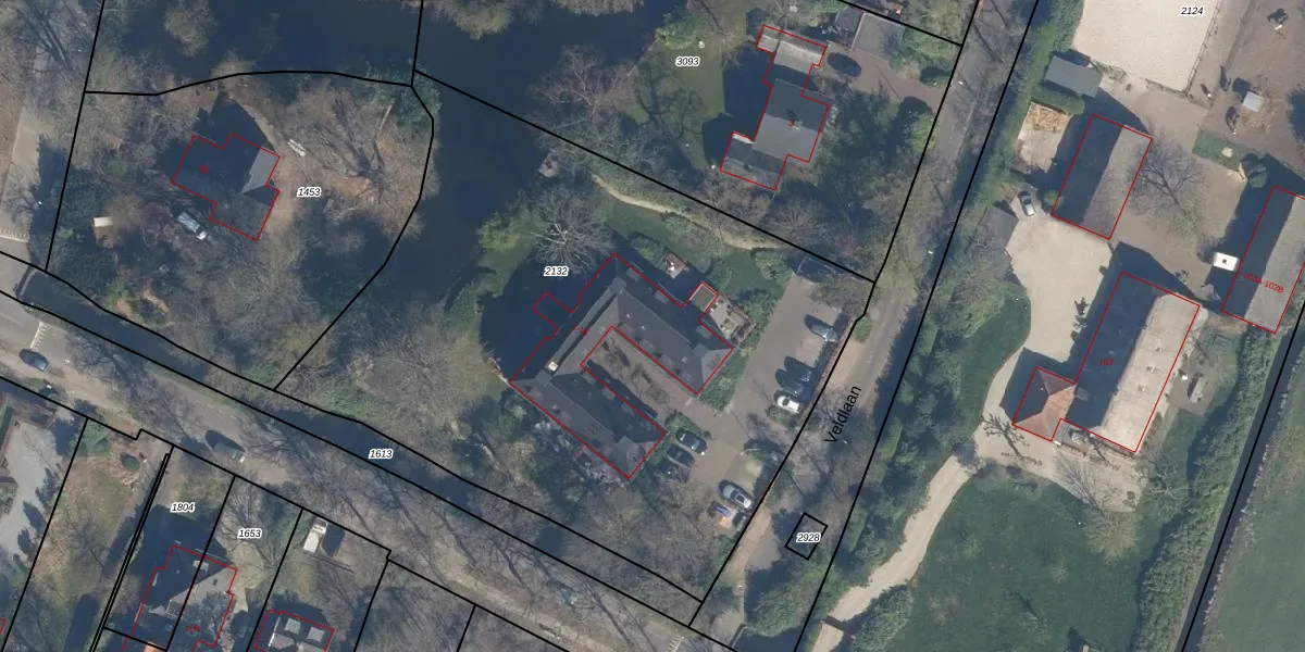 Het perceel waarop Veldlaan 1-D staat heeft een oppervlakte van 3950 m². Dit is een zeer groot perceel. De perceeloppervlakte wordt geregistreerd door het Kadaster. Gedetailleerde informatie over de maten van dit perceel kunt u vinden in het rapport Kadastrale kaart met maatvoering van Veldlaan 1-D.