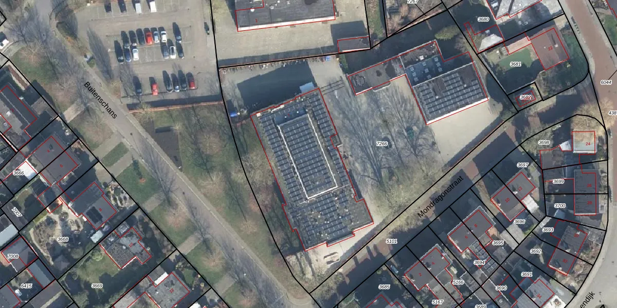 Het perceel waarop Buitenschans 7 staat heeft een oppervlakte van 4810 m². Dit is een zeer groot perceel. De perceeloppervlakte wordt geregistreerd door het Kadaster. Gedetailleerde informatie over de maten van dit perceel kunt u vinden in het rapport Kadastrale kaart met maatvoering van Buitenschans 7.