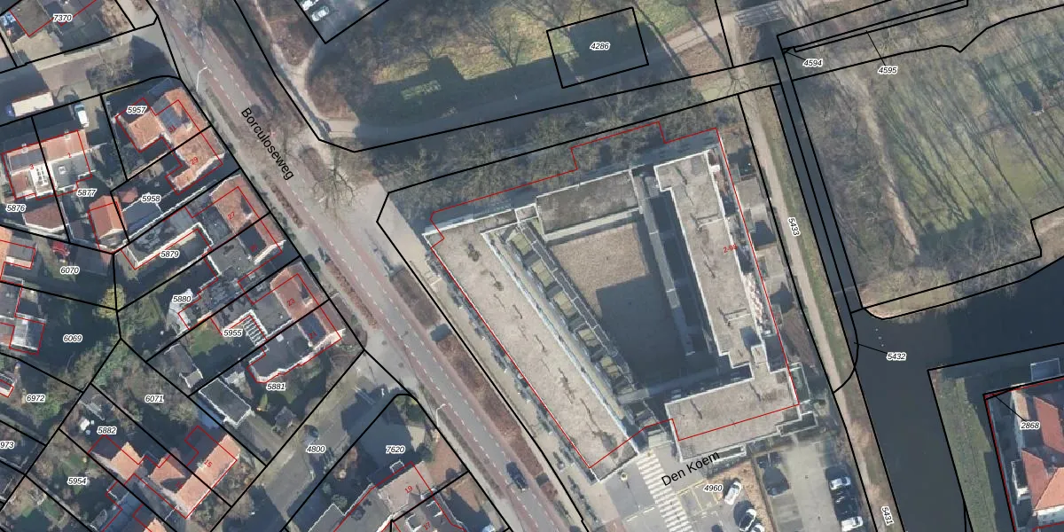 Het perceel waarop Den Koem 34 staat heeft een oppervlakte van 6625 m². Dit is een zeer groot perceel. De perceeloppervlakte wordt geregistreerd door het Kadaster. Gedetailleerde informatie over de maten van dit perceel kunt u vinden in het rapport Kadastrale kaart met maatvoering van Den Koem 34.