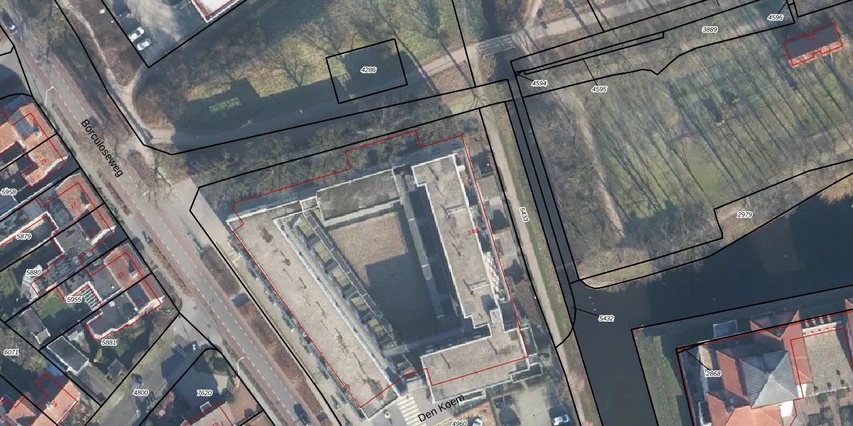 Het perceel waarop Den Koem 96 staat heeft een oppervlakte van 6625 m². Dit is een zeer groot perceel. De perceeloppervlakte wordt geregistreerd door het Kadaster. Gedetailleerde informatie over de maten van dit perceel kunt u vinden in het rapport Kadastrale kaart met maatvoering van Den Koem 96.