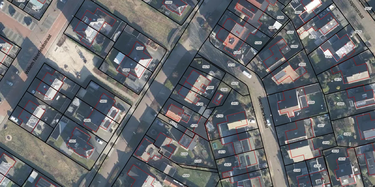 Gebruik de zoekbalk of klik op een perceel voor informatie over de adressen binnen dit perceel.