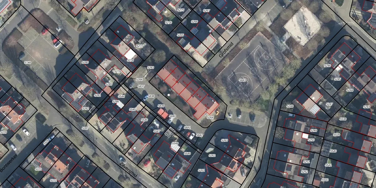 Het perceel waarop Grofsmid 28 staat heeft een oppervlakte van 745 m². Dit is een groot perceel. De perceeloppervlakte wordt geregistreerd door het Kadaster. Gedetailleerde informatie over de maten van dit perceel kunt u vinden in het rapport Kadastrale kaart met maatvoering van Grofsmid 28.