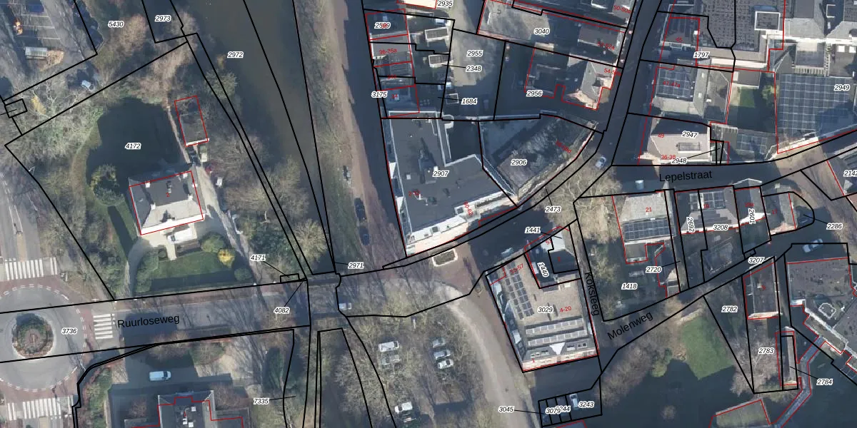Het perceel waarop Houtwal 12 staat heeft een oppervlakte van 654 m². Dit is een groot perceel. De perceeloppervlakte wordt geregistreerd door het Kadaster. Gedetailleerde informatie over de maten van dit perceel kunt u vinden in het rapport Kadastrale kaart met maatvoering van Houtwal 12.