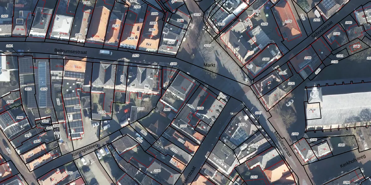 Het perceel waarop Markt 5 staat heeft een oppervlakte van 430 m². Dit is een groot perceel. De perceeloppervlakte wordt geregistreerd door het Kadaster. Gedetailleerde informatie over de maten van dit perceel kunt u vinden in het rapport Kadastrale kaart met maatvoering van Markt 5.