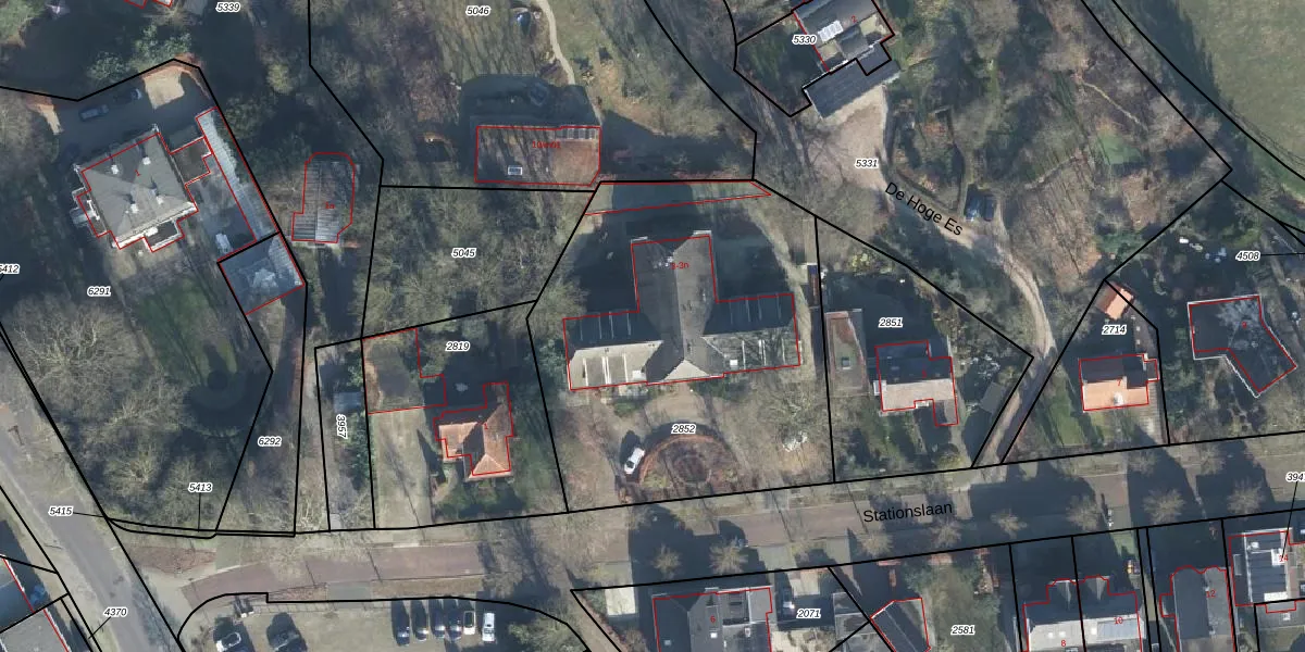 Het perceel waarop Stationslaan 3-g staat heeft een oppervlakte van 1990 m². Dit is een zeer groot perceel. De perceeloppervlakte wordt geregistreerd door het Kadaster. Gedetailleerde informatie over de maten van dit perceel kunt u vinden in het rapport Kadastrale kaart met maatvoering van Stationslaan 3-g.