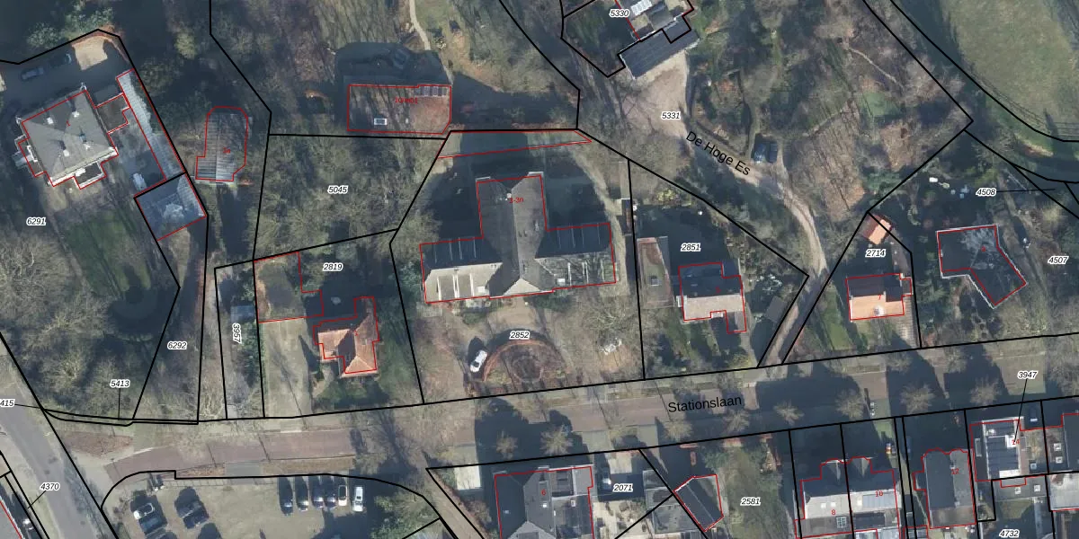 Het perceel waarop Stationslaan 3-h staat heeft een oppervlakte van 1990 m². Dit is een zeer groot perceel. De perceeloppervlakte wordt geregistreerd door het Kadaster. Gedetailleerde informatie over de maten van dit perceel kunt u vinden in het rapport Kadastrale kaart met maatvoering van Stationslaan 3-h.