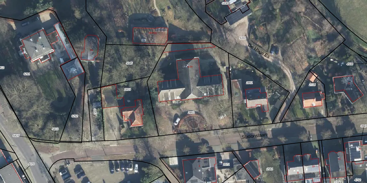 Het perceel waarop Stationslaan 3-l staat heeft een oppervlakte van 1990 m². Dit is een zeer groot perceel. De perceeloppervlakte wordt geregistreerd door het Kadaster. Gedetailleerde informatie over de maten van dit perceel kunt u vinden in het rapport Kadastrale kaart met maatvoering van Stationslaan 3-l.