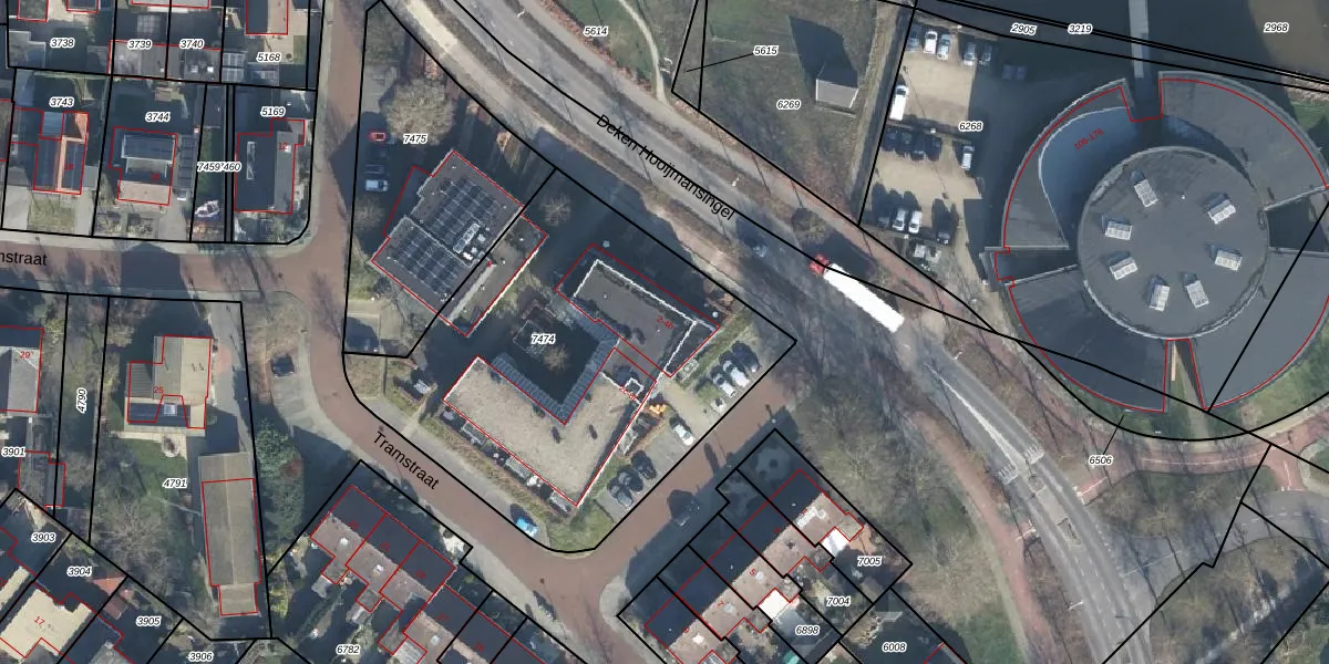 Tramstraat 2 is gelegen op kadastraal perceel GLO00B7474. Deze kadastrale aanduiding is uniek en wordt gebruikt door het Kadaster om eigendomsrechten en andere zakelijke rechten vast te leggen. Het perceel maakt onderdeel uit van de kadastrale gemeente Groenlo.
