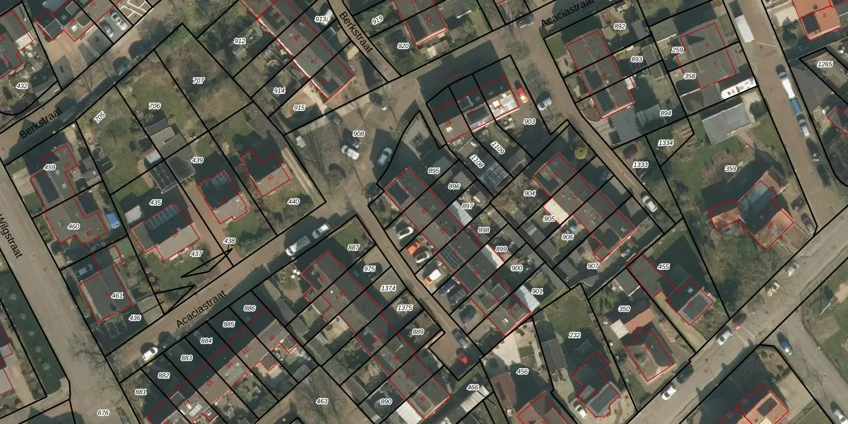 Acaciastraat 23 is gelegen op kadastraal perceel GBK00M896. Deze kadastrale aanduiding is uniek en wordt gebruikt door het Kadaster om eigendomsrechten en andere zakelijke rechten vast te leggen. Het perceel maakt onderdeel uit van de kadastrale gemeente Groesbeek.