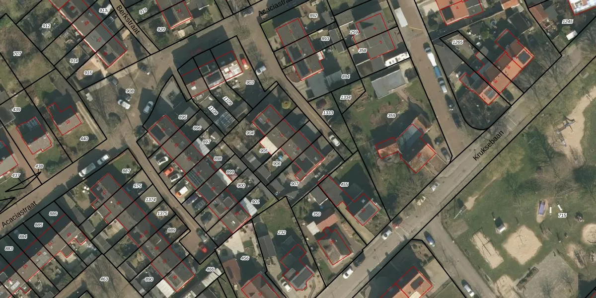 Acaciastraat 9 is gelegen op kadastraal perceel GBK00M906. Deze kadastrale aanduiding is uniek en wordt gebruikt door het Kadaster om eigendomsrechten en andere zakelijke rechten vast te leggen. Het perceel maakt onderdeel uit van de kadastrale gemeente Groesbeek.
