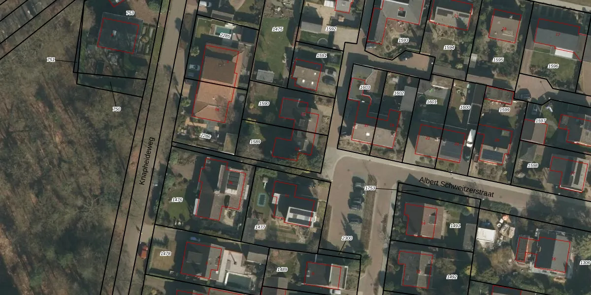 Albert Schweitzerstraat 13 is gelegen op kadastraal perceel GBK00E1589. Deze kadastrale aanduiding is uniek en wordt gebruikt door het Kadaster om eigendomsrechten en andere zakelijke rechten vast te leggen. Het perceel maakt onderdeel uit van de kadastrale gemeente Groesbeek.