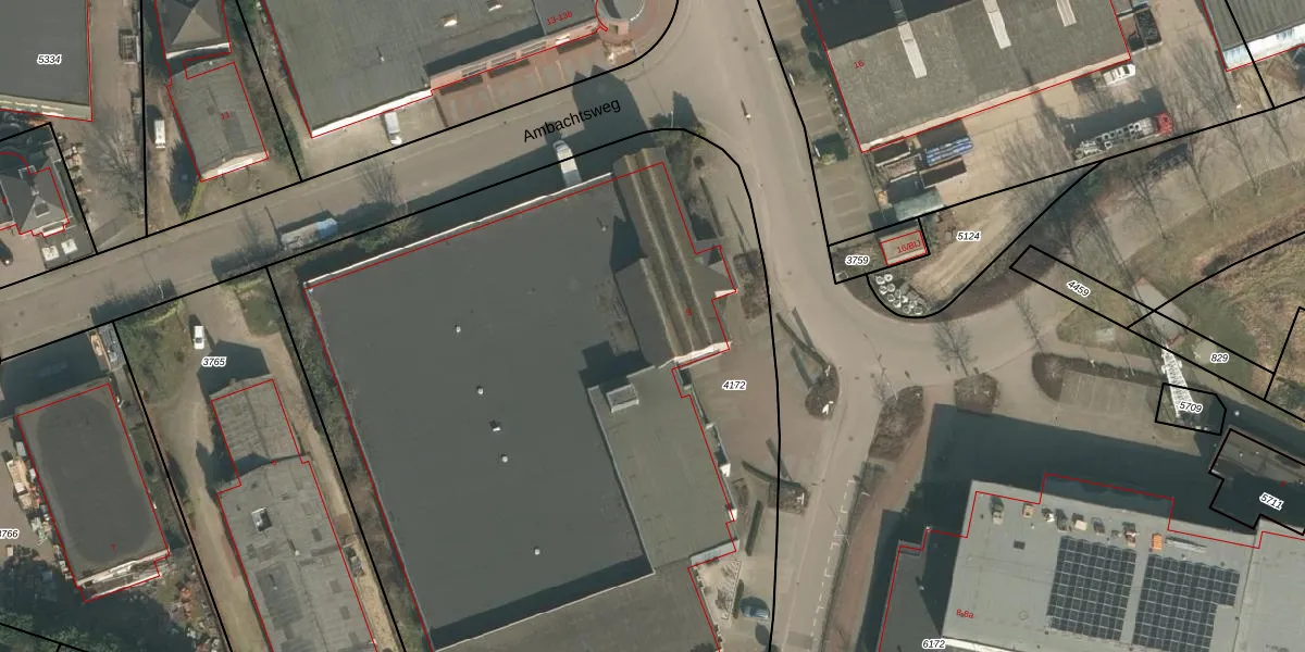Het perceel waarop Ambachtsweg 3 staat heeft een oppervlakte van 5750 m². Dit is een zeer groot perceel. De perceeloppervlakte wordt geregistreerd door het Kadaster. Gedetailleerde informatie over de maten van dit perceel kunt u vinden in het rapport Kadastrale kaart met maatvoering van Ambachtsweg 3.
