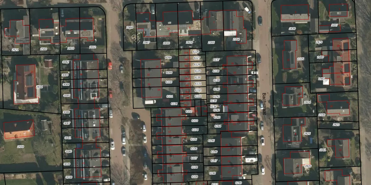 Bachstraat 35-g is gelegen op kadastraal perceel GBK00L6132. Deze kadastrale aanduiding is uniek en wordt gebruikt door het Kadaster om eigendomsrechten en andere zakelijke rechten vast te leggen. Het perceel maakt onderdeel uit van de kadastrale gemeente Groesbeek.