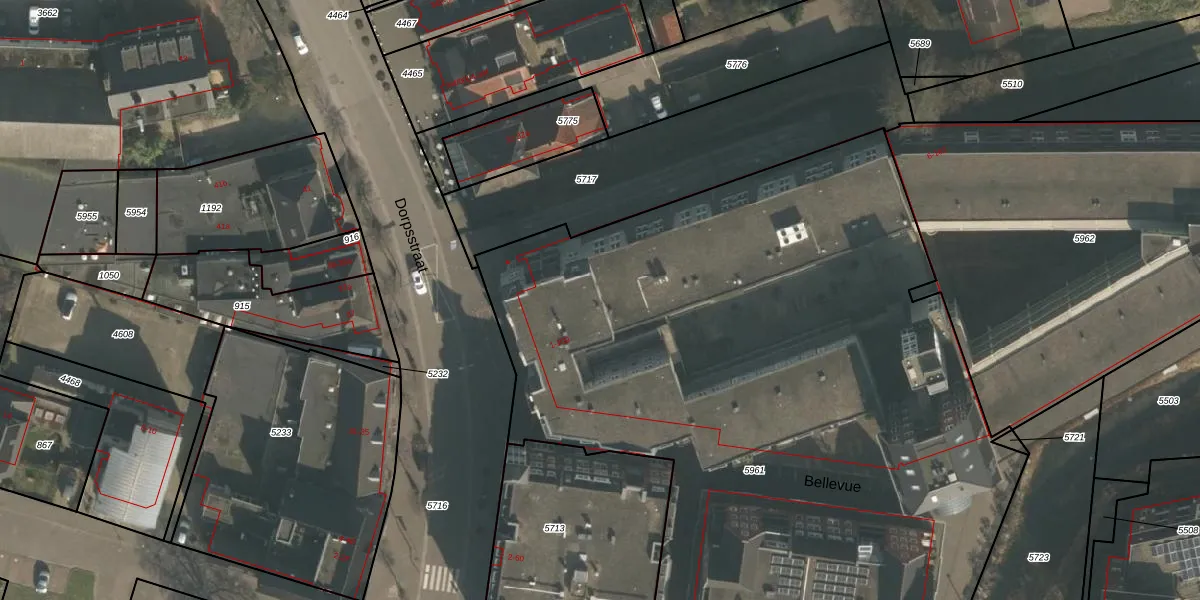 Het perceel waarop Bellevue 19 staat heeft een oppervlakte van 5303 m². Dit is een zeer groot perceel. De perceeloppervlakte wordt geregistreerd door het Kadaster. Gedetailleerde informatie over de maten van dit perceel kunt u vinden in het rapport Kadastrale kaart met maatvoering van Bellevue 19.