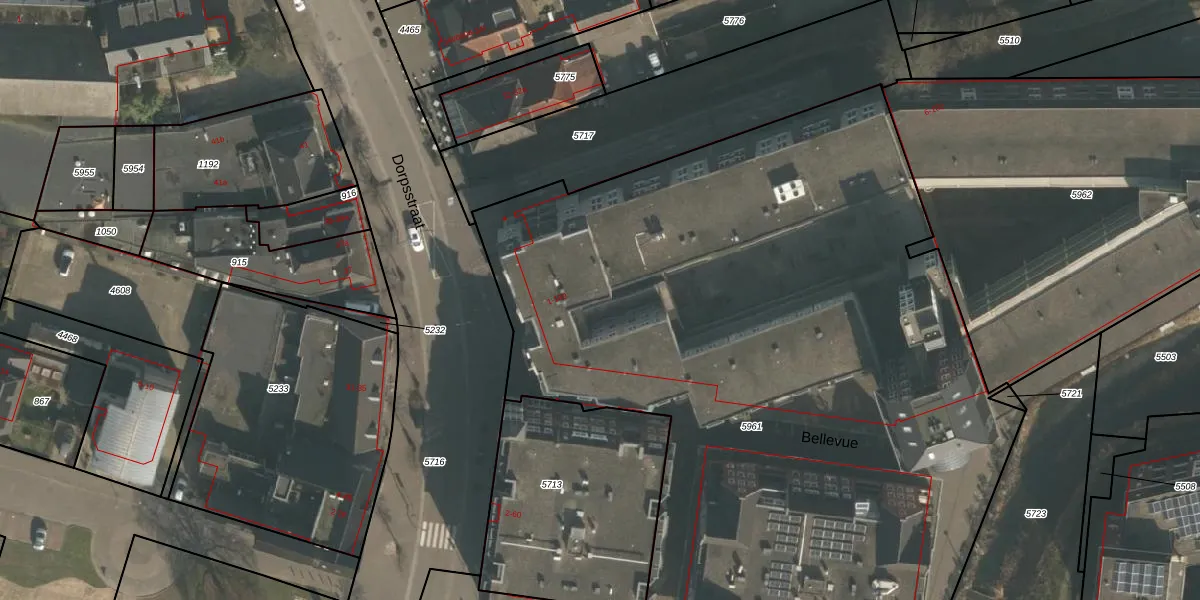 Het perceel waarop Bellevue 23 staat heeft een oppervlakte van 5303 m². Dit is een zeer groot perceel. De perceeloppervlakte wordt geregistreerd door het Kadaster. Gedetailleerde informatie over de maten van dit perceel kunt u vinden in het rapport Kadastrale kaart met maatvoering van Bellevue 23.