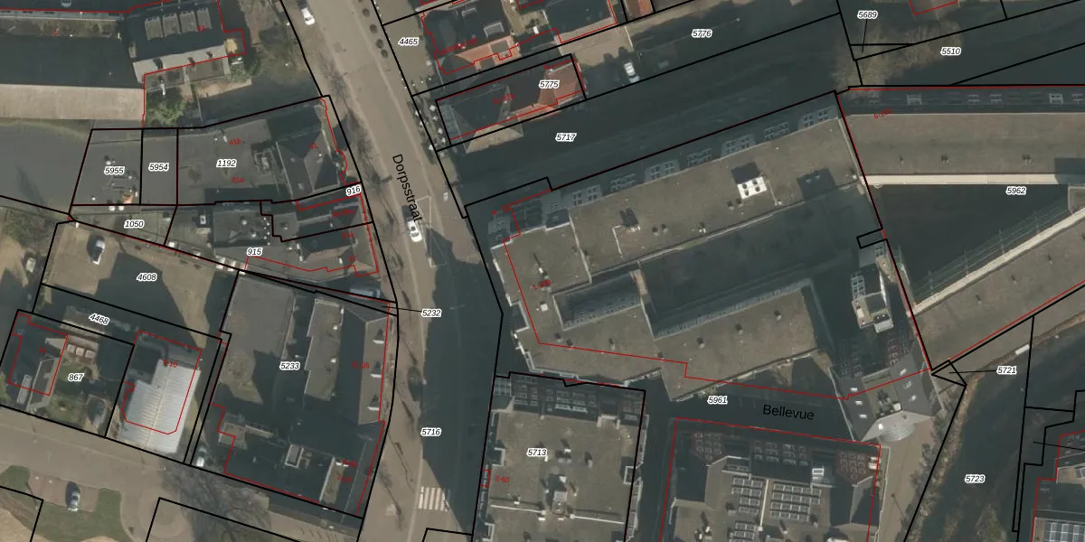 Het perceel waarop Bellevue 5 staat heeft een oppervlakte van 5303 m². Dit is een zeer groot perceel. De perceeloppervlakte wordt geregistreerd door het Kadaster. Gedetailleerde informatie over de maten van dit perceel kunt u vinden in het rapport Kadastrale kaart met maatvoering van Bellevue 5.