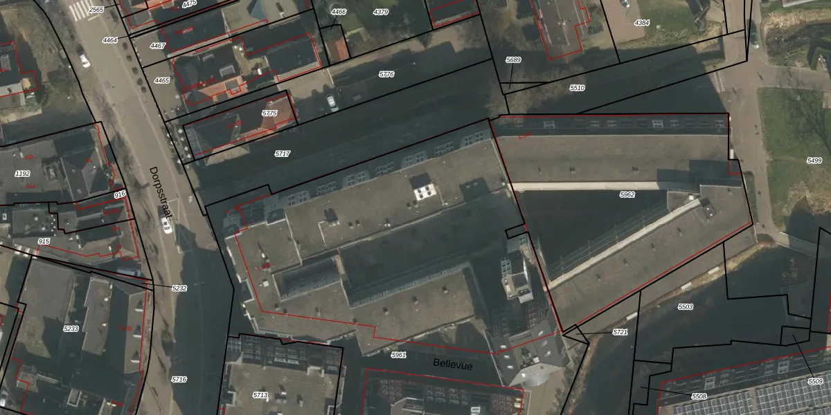 Het perceel waarop Bellevue 67 staat heeft een oppervlakte van 5303 m². Dit is een zeer groot perceel. De perceeloppervlakte wordt geregistreerd door het Kadaster. Gedetailleerde informatie over de maten van dit perceel kunt u vinden in het rapport Kadastrale kaart met maatvoering van Bellevue 67.