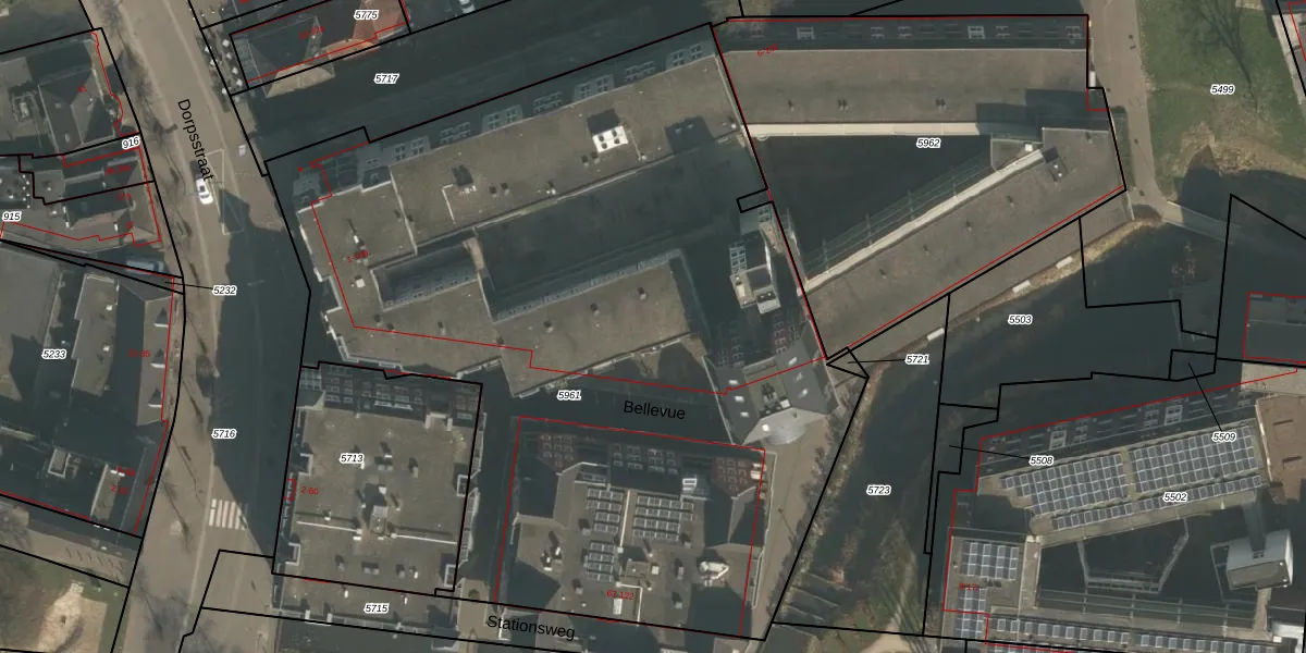 Het perceel waarop Bellevue 77 staat heeft een oppervlakte van 5303 m². Dit is een zeer groot perceel. De perceeloppervlakte wordt geregistreerd door het Kadaster. Gedetailleerde informatie over de maten van dit perceel kunt u vinden in het rapport Kadastrale kaart met maatvoering van Bellevue 77.