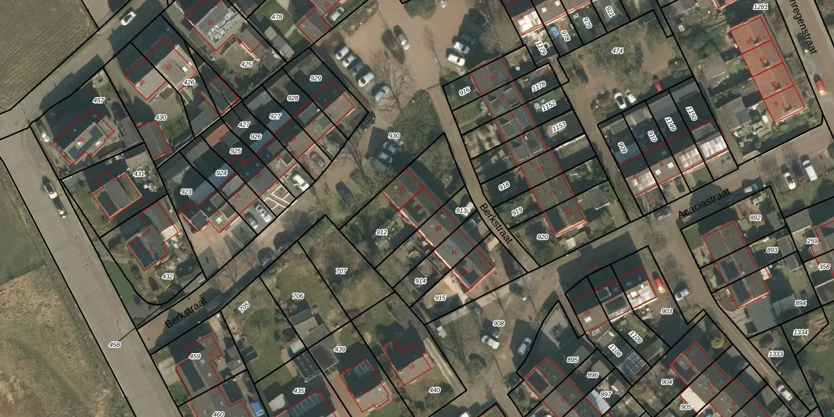 Het perceel waarop Berkstraat 31 staat heeft een oppervlakte van 407 m². Dit is een groot perceel. De perceeloppervlakte wordt geregistreerd door het Kadaster. Gedetailleerde informatie over de maten van dit perceel kunt u vinden in het rapport Kadastrale kaart met maatvoering van Berkstraat 31.