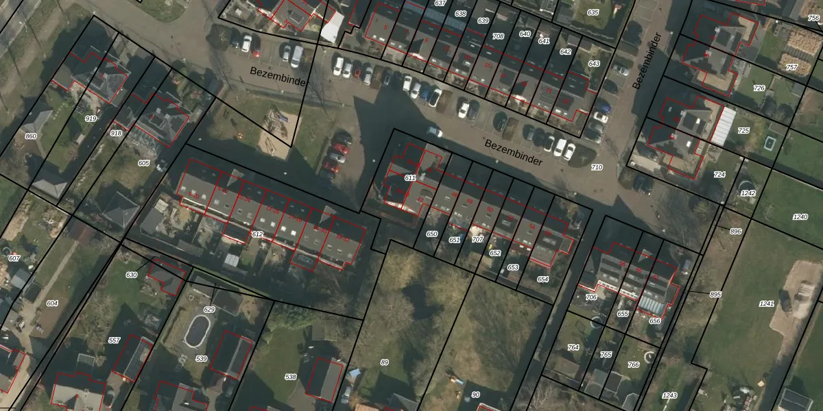 Bezembinder 42 is gelegen op kadastraal perceel GBK00P611. Deze kadastrale aanduiding is uniek en wordt gebruikt door het Kadaster om eigendomsrechten en andere zakelijke rechten vast te leggen. Het perceel maakt onderdeel uit van de kadastrale gemeente Groesbeek.