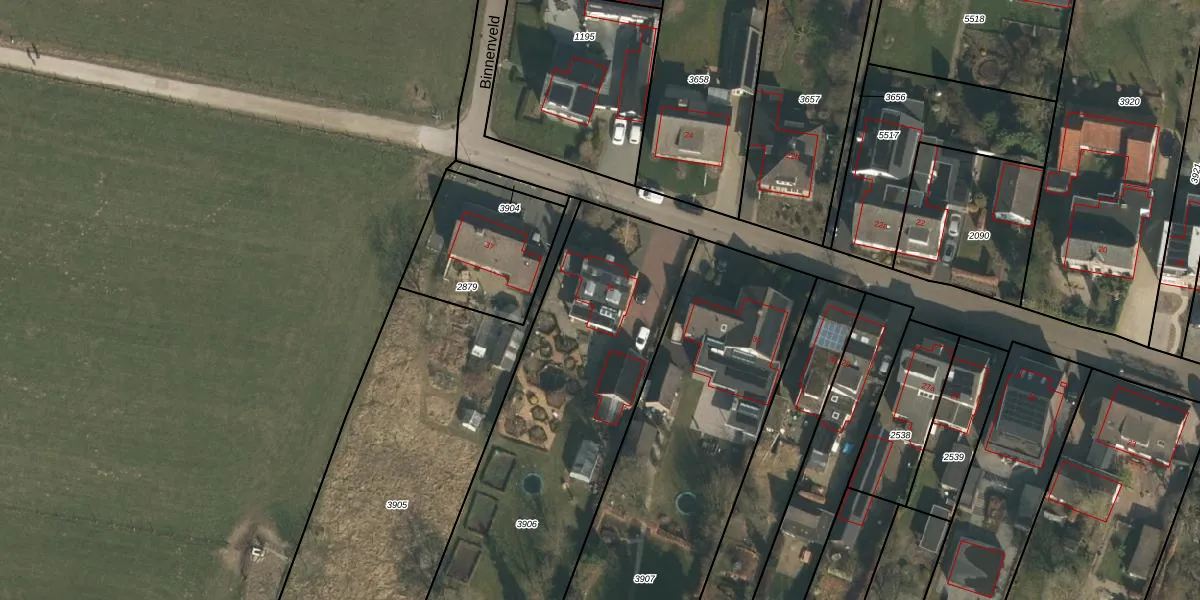 Binnenveld 35 is gelegen op kadastraal perceel GBK00L3906. Deze kadastrale aanduiding is uniek en wordt gebruikt door het Kadaster om eigendomsrechten en andere zakelijke rechten vast te leggen. Het perceel maakt onderdeel uit van de kadastrale gemeente Groesbeek.