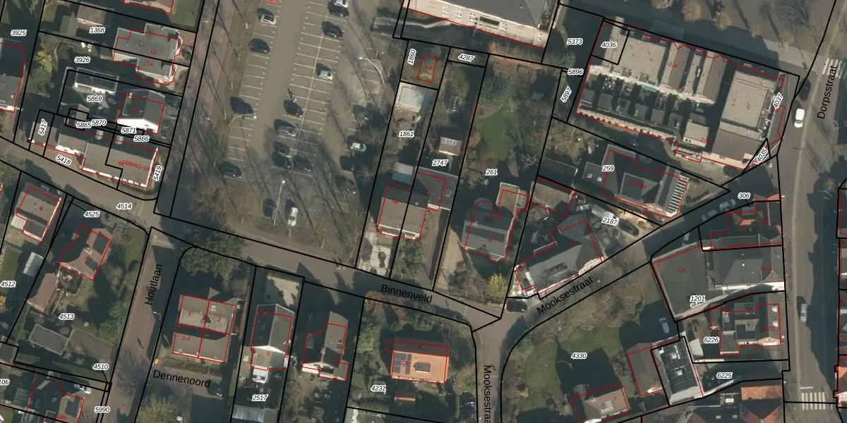 Het perceel waarop Binnenveld 4 staat heeft een oppervlakte van 544 m². Dit is een groot perceel. De perceeloppervlakte wordt geregistreerd door het Kadaster. Gedetailleerde informatie over de maten van dit perceel kunt u vinden in het rapport Kadastrale kaart met maatvoering van Binnenveld 4.