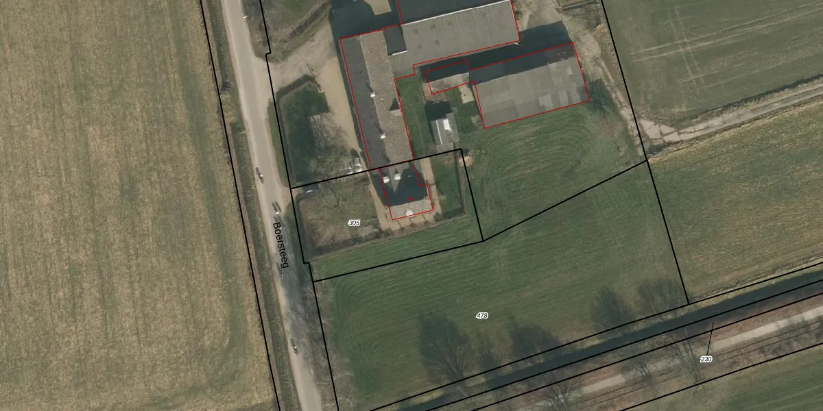 Boersteeg 14 is gelegen op kadastraal perceel GBK00O305. Deze kadastrale aanduiding is uniek en wordt gebruikt door het Kadaster om eigendomsrechten en andere zakelijke rechten vast te leggen. Het perceel maakt onderdeel uit van de kadastrale gemeente Groesbeek.