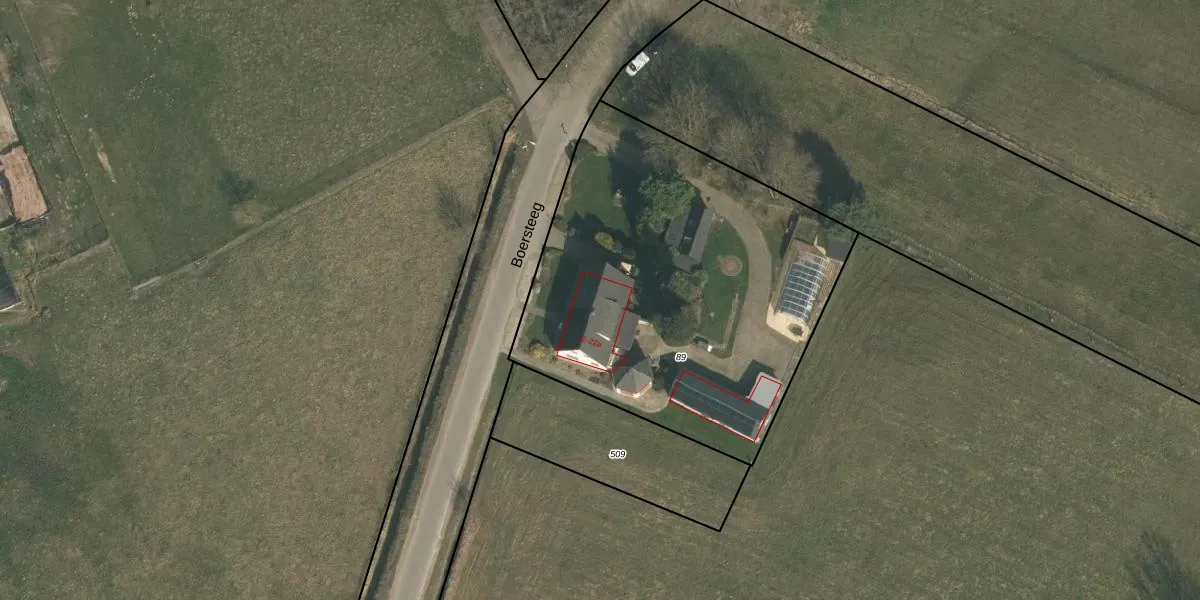 Boersteeg 22-a is gelegen op kadastraal perceel GBK00O89. Deze kadastrale aanduiding is uniek en wordt gebruikt door het Kadaster om eigendomsrechten en andere zakelijke rechten vast te leggen. Het perceel maakt onderdeel uit van de kadastrale gemeente Groesbeek.