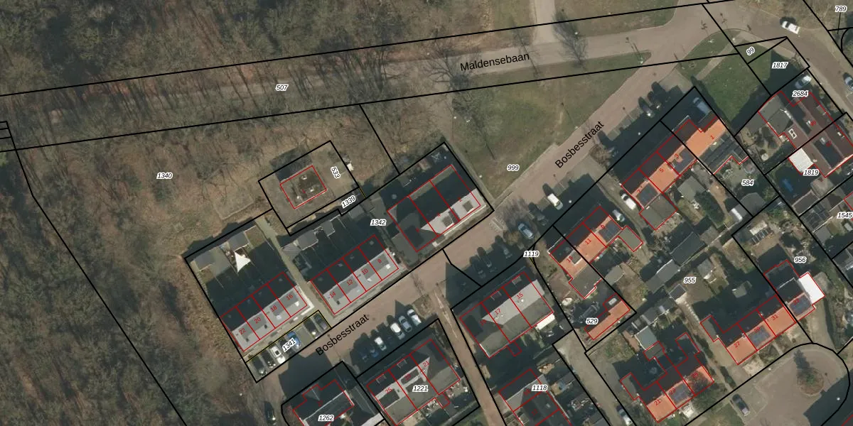 Het perceel waarop Bosbesstraat 4 staat heeft een oppervlakte van 1581 m². Dit is een zeer groot perceel. De perceeloppervlakte wordt geregistreerd door het Kadaster. Gedetailleerde informatie over de maten van dit perceel kunt u vinden in het rapport Kadastrale kaart met maatvoering van Bosbesstraat 4.