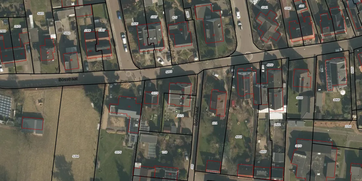 Het perceel waarop Bosstraat 21 staat heeft een oppervlakte van 515 m². Dit is een groot perceel. De perceeloppervlakte wordt geregistreerd door het Kadaster. Gedetailleerde informatie over de maten van dit perceel kunt u vinden in het rapport Kadastrale kaart met maatvoering van Bosstraat 21.