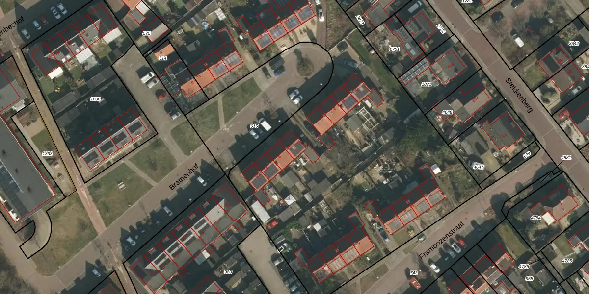 Het perceel waarop Bramenhof 28 staat heeft een oppervlakte van 7290 m². Dit is een zeer groot perceel. De perceeloppervlakte wordt geregistreerd door het Kadaster. Gedetailleerde informatie over de maten van dit perceel kunt u vinden in het rapport Kadastrale kaart met maatvoering van Bramenhof 28.