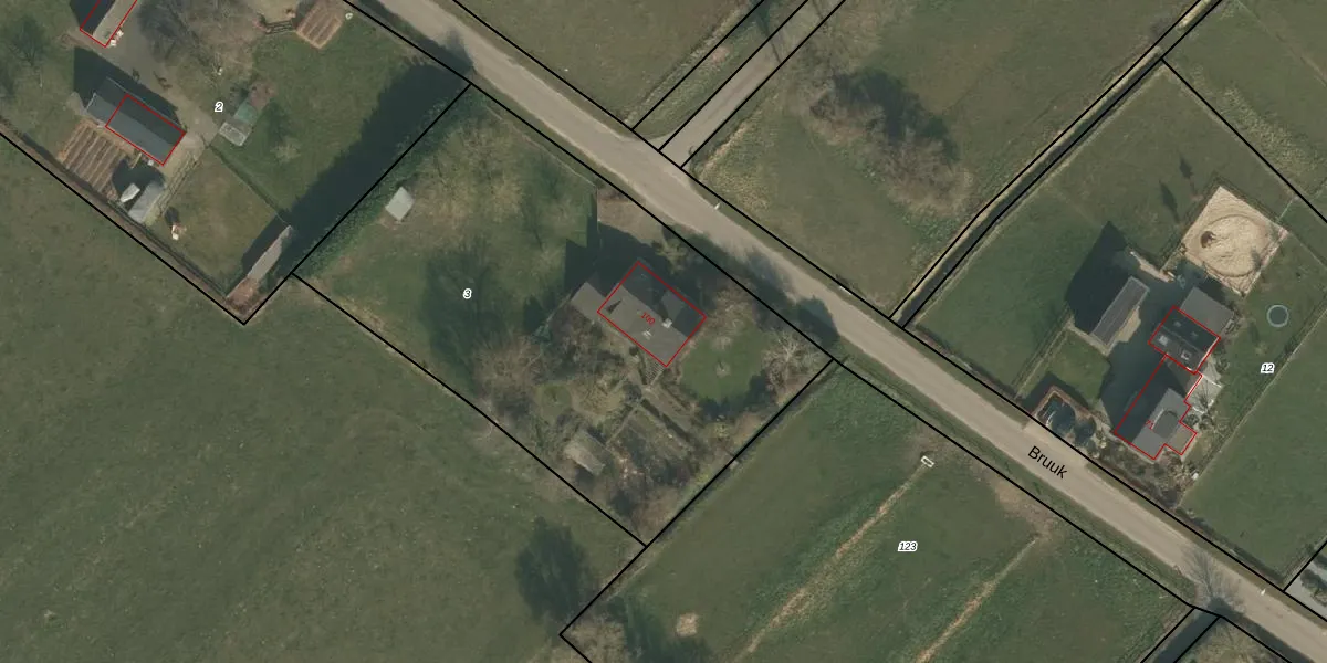 Het perceel waarop Bruuk 100 staat heeft een oppervlakte van 2680 m². Dit is een zeer groot perceel. De perceeloppervlakte wordt geregistreerd door het Kadaster. Gedetailleerde informatie over de maten van dit perceel kunt u vinden in het rapport Kadastrale kaart met maatvoering van Bruuk 100.