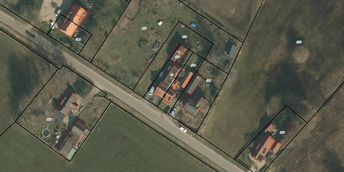 Bruuk 39 is gelegen op kadastraal perceel GBK00Q104. Deze kadastrale aanduiding is uniek en wordt gebruikt door het Kadaster om eigendomsrechten en andere zakelijke rechten vast te leggen. Het perceel maakt onderdeel uit van de kadastrale gemeente Groesbeek.