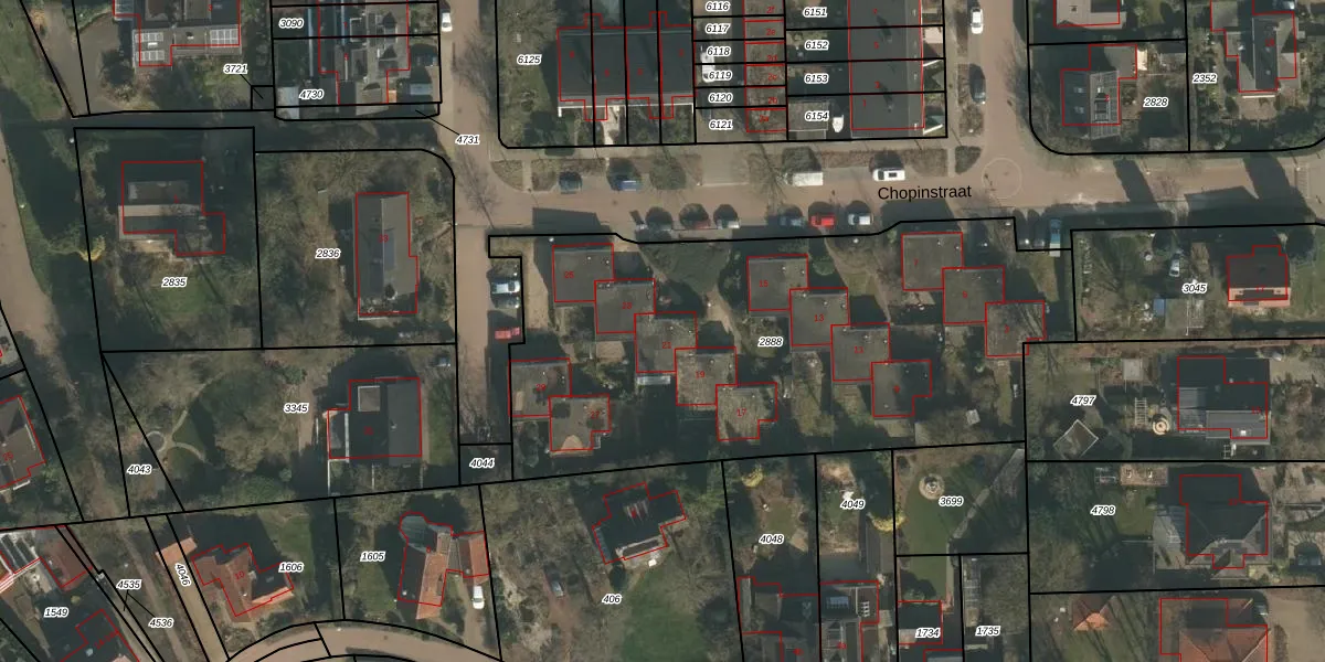 Het perceel waarop Chopinstraat 11-b staat heeft een oppervlakte van 2705 m². Dit is een zeer groot perceel. De perceeloppervlakte wordt geregistreerd door het Kadaster. Gedetailleerde informatie over de maten van dit perceel kunt u vinden in het rapport Kadastrale kaart met maatvoering van Chopinstraat 11-b.