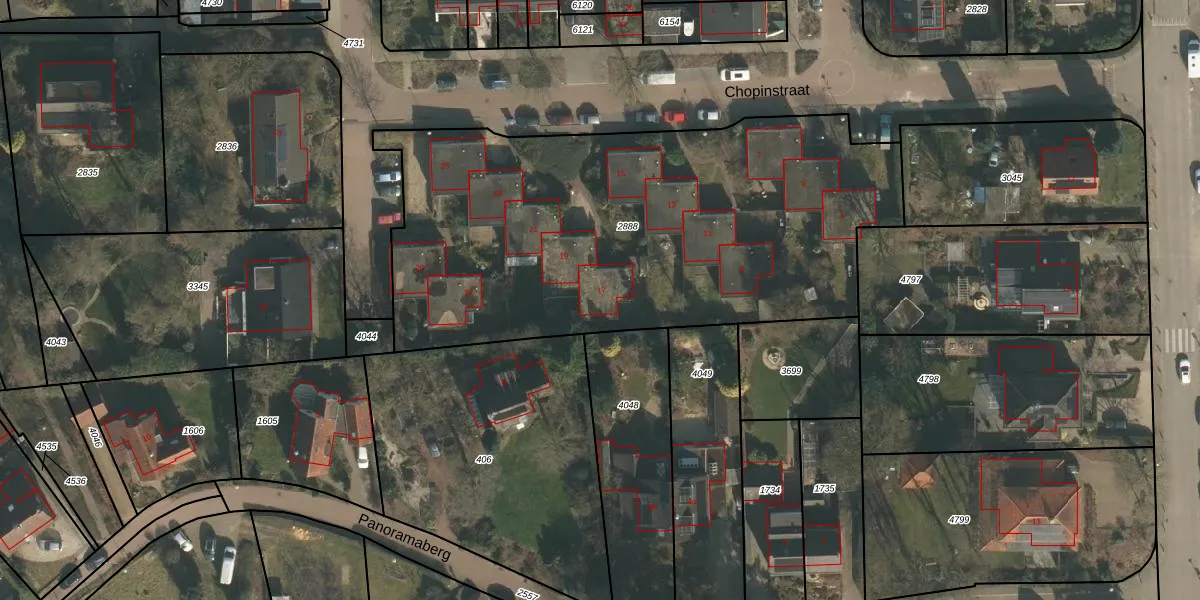 Het perceel waarop Chopinstraat 17 staat heeft een oppervlakte van 2705 m². Dit is een zeer groot perceel. De perceeloppervlakte wordt geregistreerd door het Kadaster. Gedetailleerde informatie over de maten van dit perceel kunt u vinden in het rapport Kadastrale kaart met maatvoering van Chopinstraat 17.