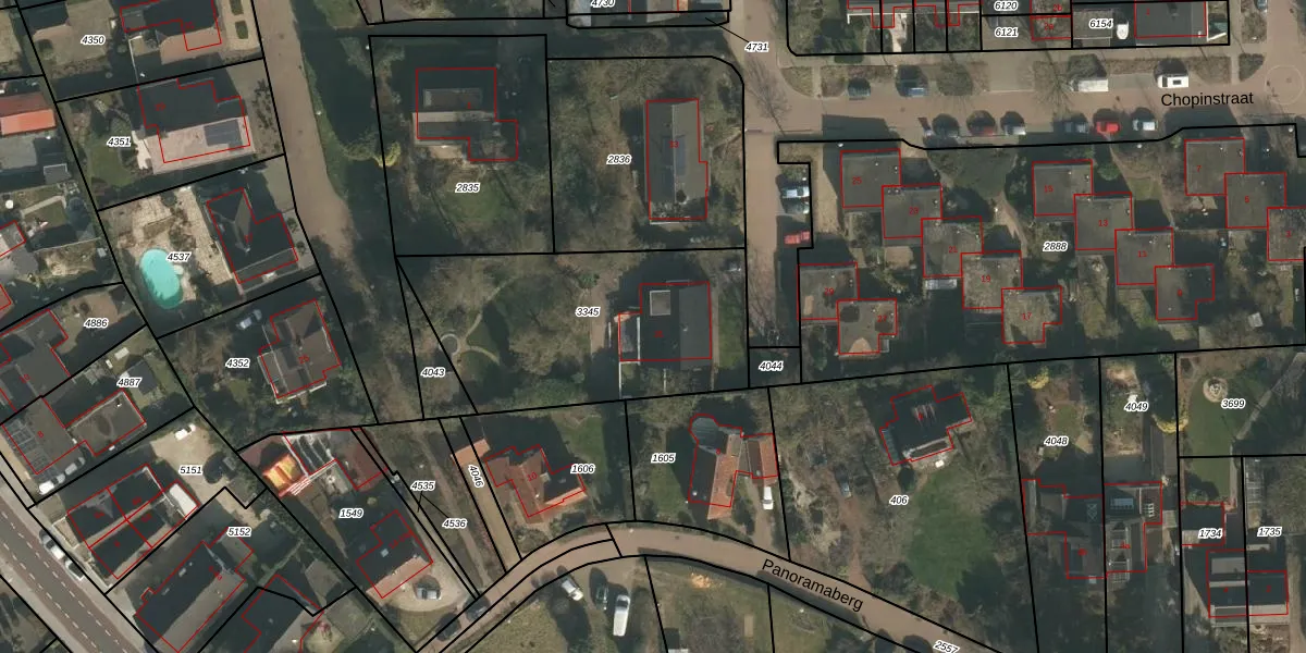 Het perceel waarop Chopinstraat 31 staat heeft een oppervlakte van 1090 m². Dit is een zeer groot perceel. De perceeloppervlakte wordt geregistreerd door het Kadaster. Gedetailleerde informatie over de maten van dit perceel kunt u vinden in het rapport Kadastrale kaart met maatvoering van Chopinstraat 31.