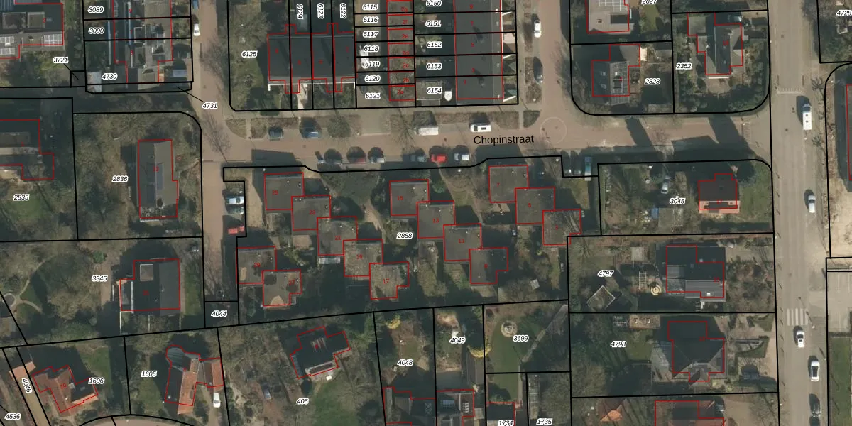Het perceel waarop Chopinstraat 7-a staat heeft een oppervlakte van 2705 m². Dit is een zeer groot perceel. De perceeloppervlakte wordt geregistreerd door het Kadaster. Gedetailleerde informatie over de maten van dit perceel kunt u vinden in het rapport Kadastrale kaart met maatvoering van Chopinstraat 7-a.