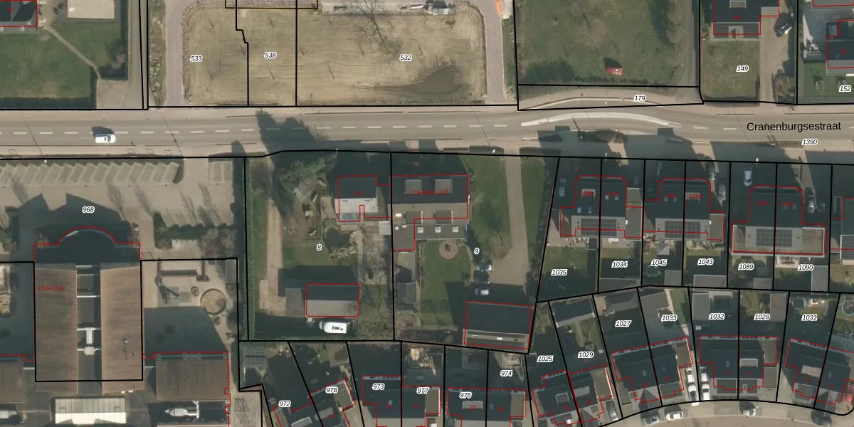 Het perceel waarop Cranenburgsestraat 116 staat heeft een oppervlakte van 1620 m². Dit is een zeer groot perceel. De perceeloppervlakte wordt geregistreerd door het Kadaster. Gedetailleerde informatie over de maten van dit perceel kunt u vinden in het rapport Kadastrale kaart met maatvoering van Cranenburgsestraat 116.