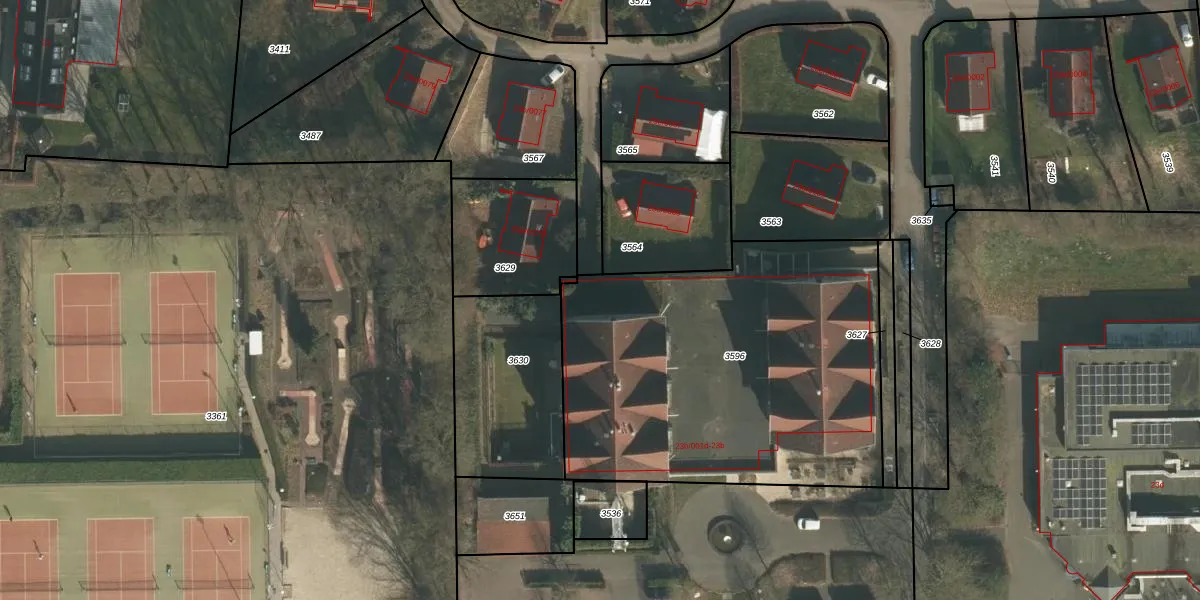 Het adres is gelegen op perceel 3596 in de sectie I en de kadastrale gemeente Groesbeek. De kadastrale aanduiding is aldus GBK00-I-3596. Het perceel is 1850 m² groot. Dat is kleiner dan de gemiddelde perceeloppervlakte in Groesbeek, dat op 4189,04 m² ligt. De grootste perceeloppervlakte in de kadastrale gemeente is 99,9 ha. De kleinste oppervlakte bedraagt 0 m². Er zijn 41 adressen aanwezig op het perceel. In de Basisregistratie Kadaster (BRK) werden de grenzen van het perceel geregistreerd op 02-12-2009.