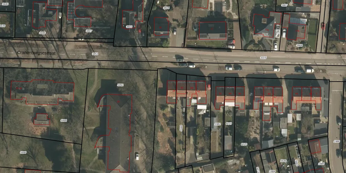 Het perceel waarop Cranenburgsestraat 24 staat heeft een oppervlakte van 1450 m². Dit is een zeer groot perceel. De perceeloppervlakte wordt geregistreerd door het Kadaster. Gedetailleerde informatie over de maten van dit perceel kunt u vinden in het rapport Kadastrale kaart met maatvoering van Cranenburgsestraat 24.